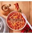 Ingrediënten: voorgekookte fusilli* 70% (maïsmeel* 45,5%, rijstmeel* 19,5%), dadelgranulaat* (dadelsapconcentraat*, rijstmeel*), tomatengranulaat* 7,9% (tomatenpulpconcentraat*, maïszetmeel*), aardappelzetmeel*, wortel*, tomatenpoeder* 3,7%, zeezout, knoflookpoeder*, rode bietpoeder*, oregano*, peterselie*, zonnebloemolie*. peper*